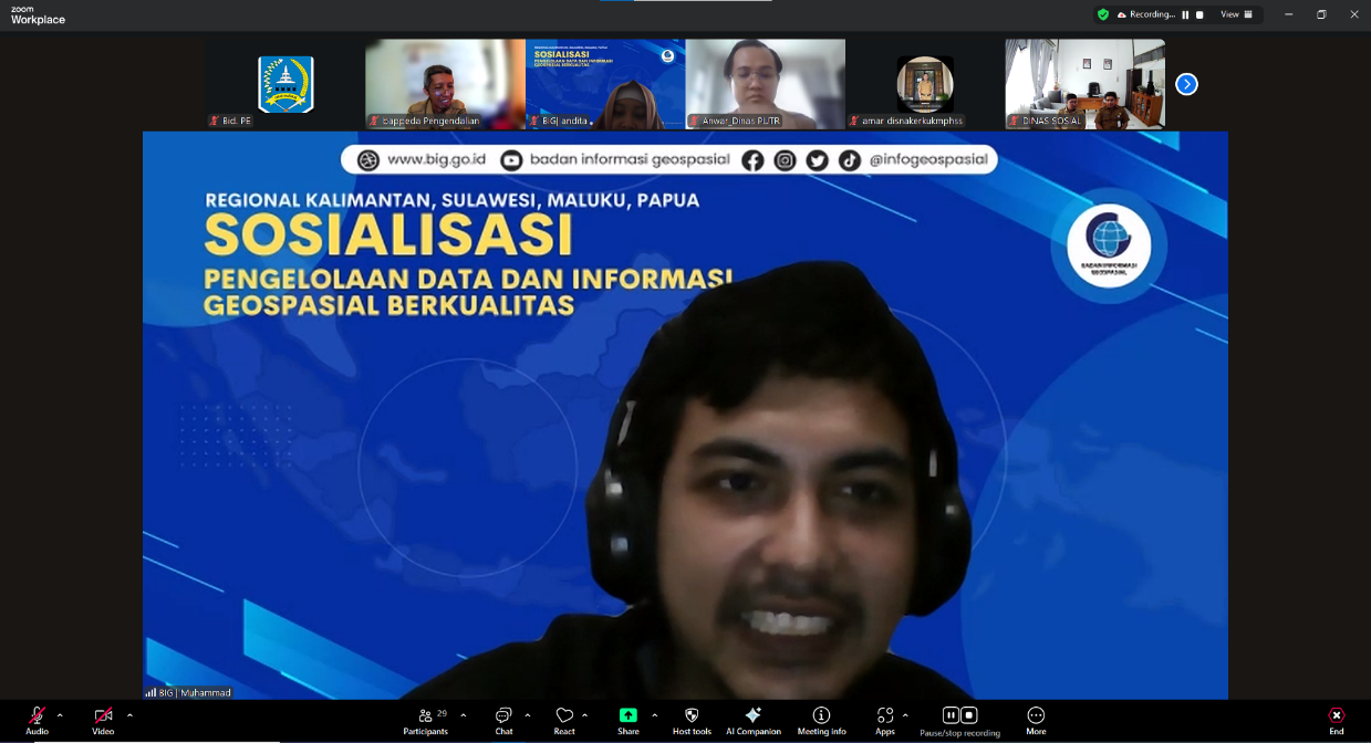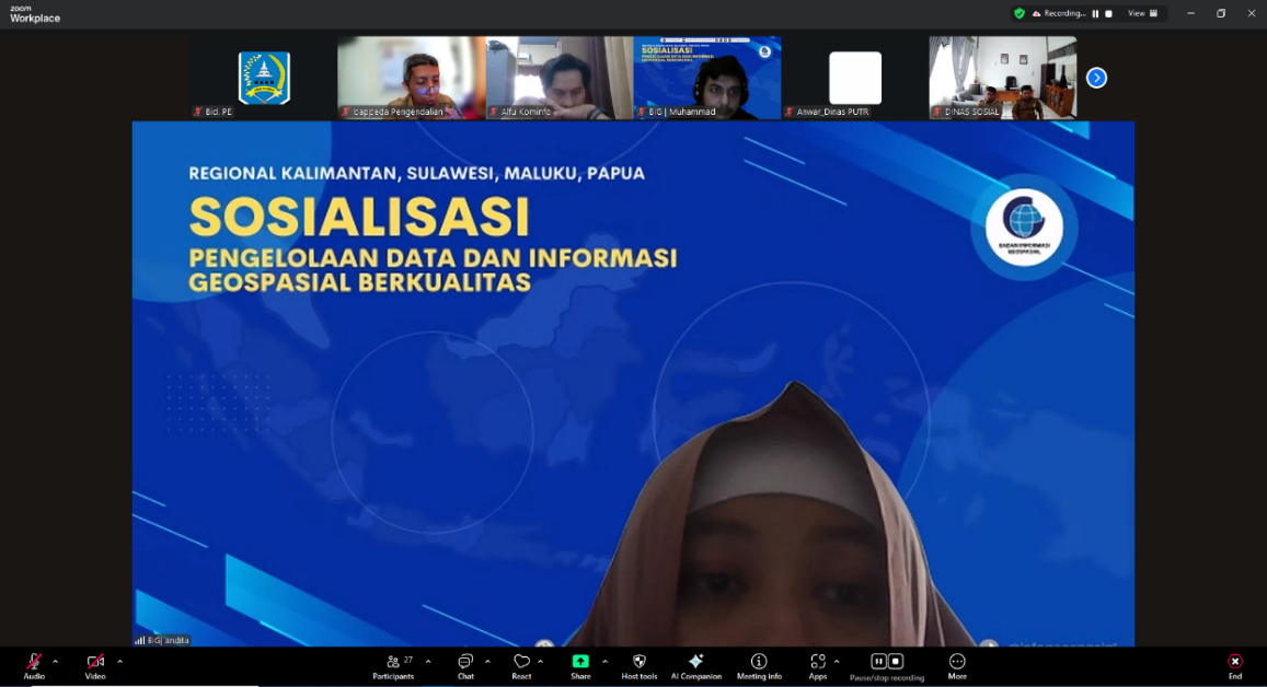 Pemaparan lima langkah utama untuk proses publikasi data spasial : 1. Kelengkapan Dokumen : memastikan data memiliki metadata, peta, dan referensi yang lengkap. 2. Validasi Data : dilakukan oleh walidata untuk mengecek kualitas dan kesesuaian standar. 3. Persetujuan Pimpinan : proses persetujuan internal sebagai bagian dari kebijakan satu data. 4. Upload ke Geoportal : data diunggah ke platform Geoportal Palapa. 5. Publikasi dan Monitoring : data dipublikasikan dan dimonitor penggunaannya. Selanjutnya masuk ke dalam sesi diskusi yang dimoderatori oleh Kepala Bidang Pengendalian dan Evaluasi Bappelitbangda Kabupaten Hulu Sungai Selatan.